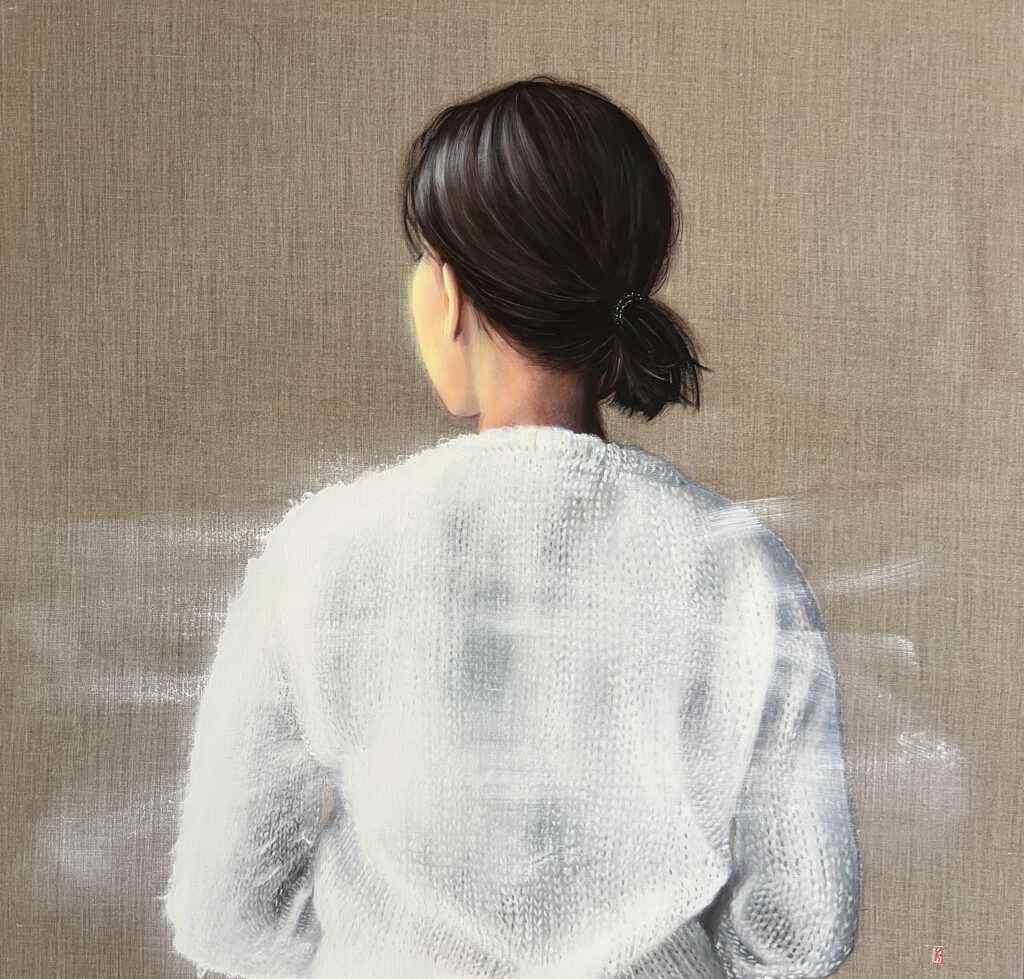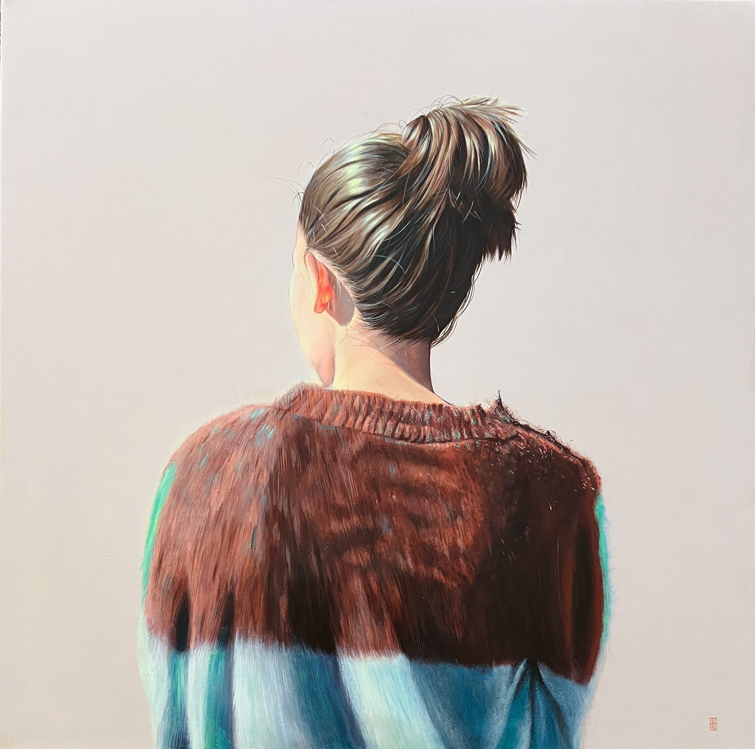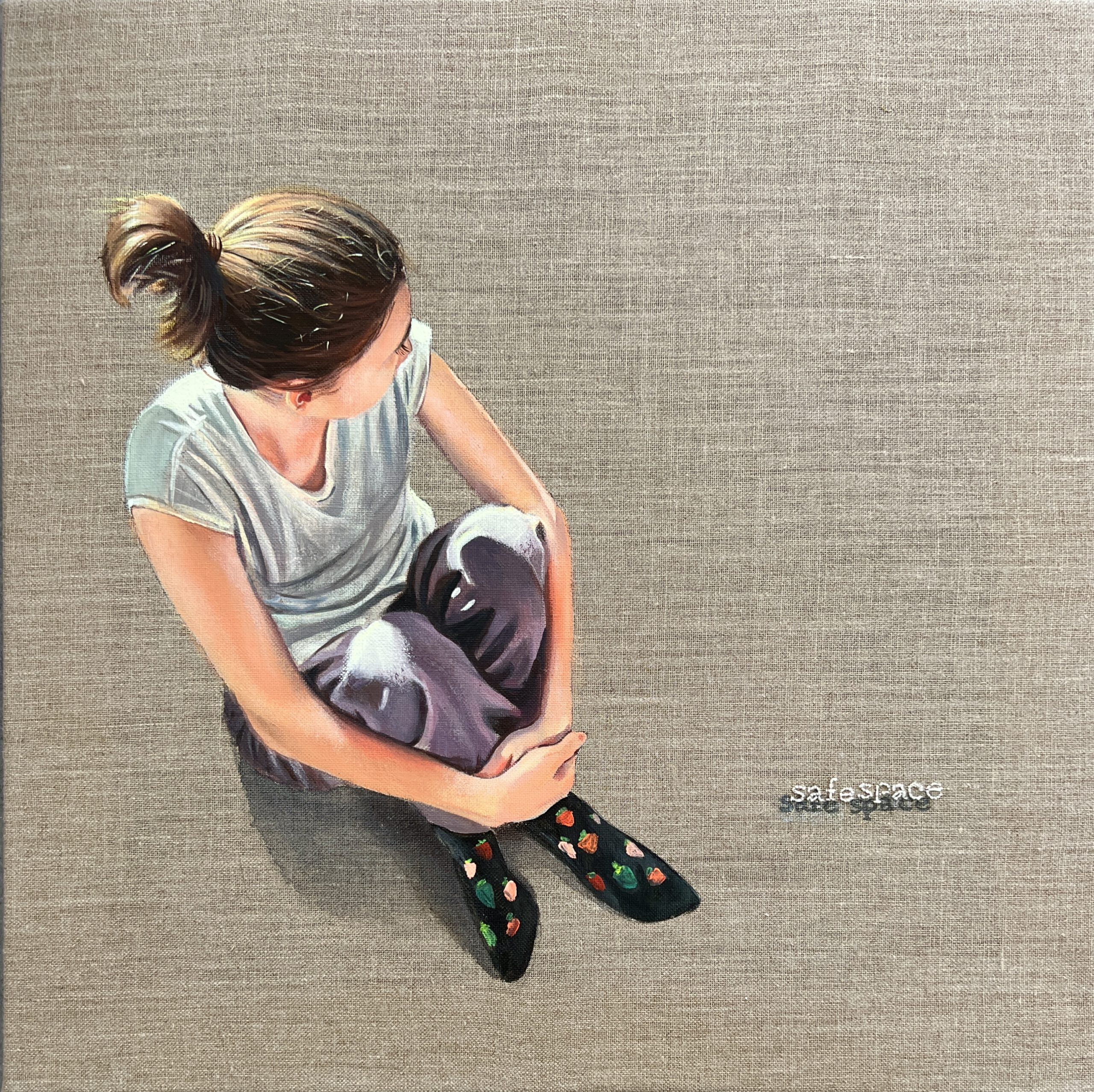 Portfolio Interdependence, 2024, Acryl, Modelliermasse und Pigment auf Leinwand, 100 x 100 cm Focussing 2025, Acryl und Modelliermasse auf Leinwand, 100 x 100 cm Safe Space 2025, Acryl, Modelliermasse und Rohseidenstickerei auf Rohleinen, 50 x 50 cm